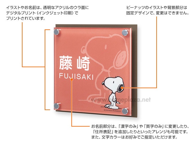 表札 スヌーピー NSPAISS-C5-25 (散歩するスヌーピー) W130×H130mm