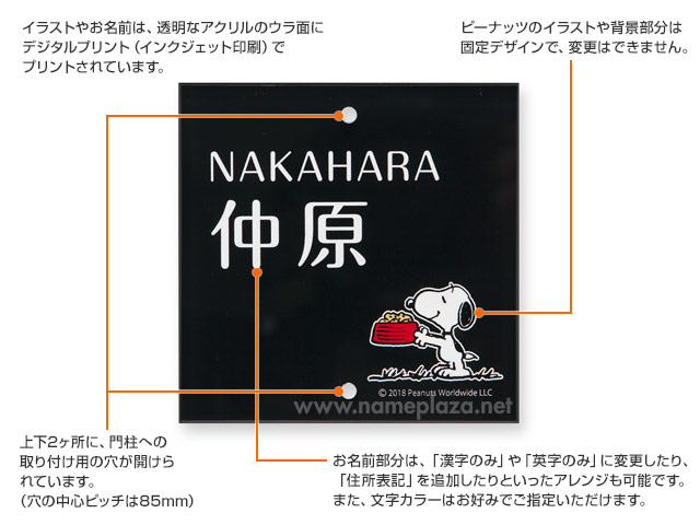 表札 スヌーピー NSPSIS-J3-23 (えさ皿を持つスヌーピー) W105×H105mm 上下2穴タイプ