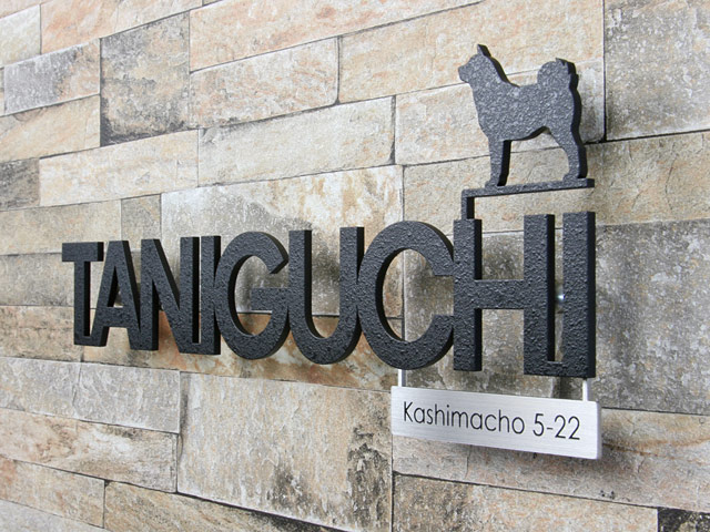表札 KMIR-BK-N1(アイアン調表札/ゴシック系書体+犬デザイン)KMアイアン