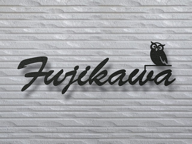 表札 KMIR-BK-N7(アイアン調表札/筆記体+フクロウデザイン)KMアイアン
