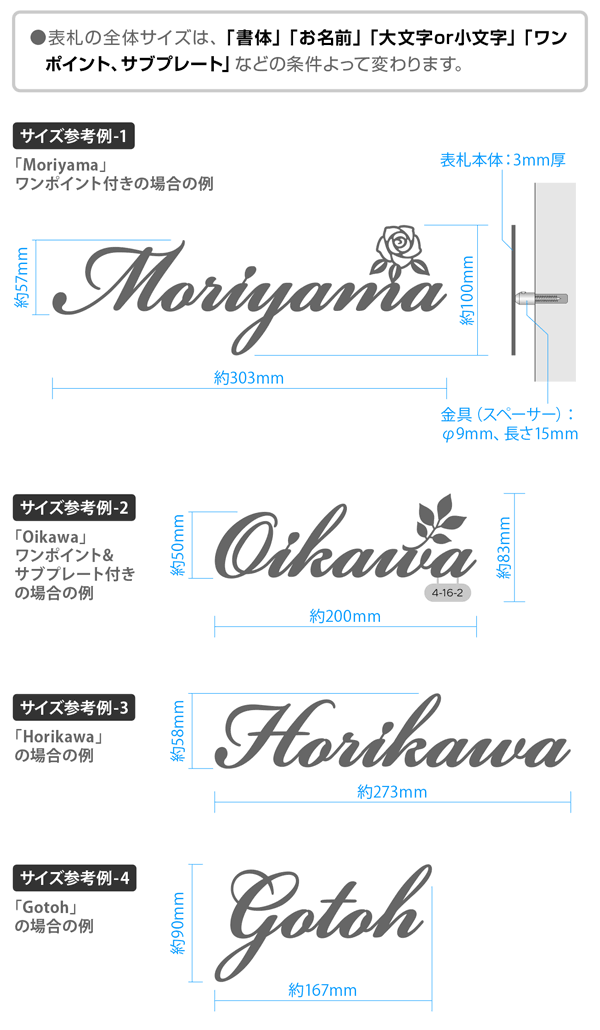 (※書体、お名前、オプション指定によってサイズは変わります。)