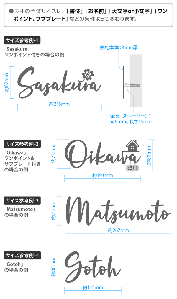(※書体、お名前、オプション指定によってサイズは変わります。)