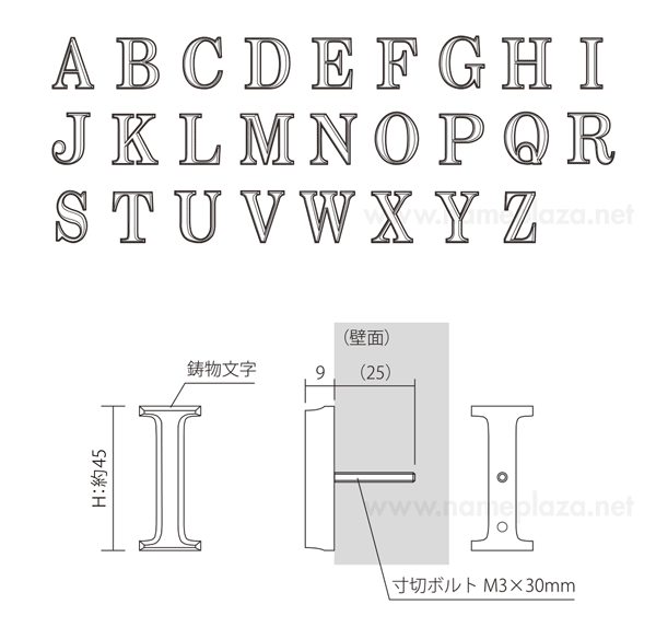 表札 CAS-1(アルミ鋳物文字/キャステレ)/※価格は1文字あたり
