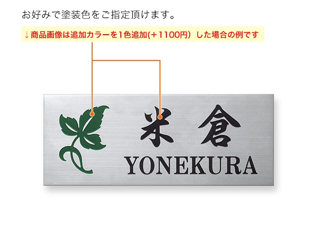 凹部はイブシ調仕上げ(凸部よりも濃い色合い)となり、文字部分カラーや図案部分カラーを指定することはできません。