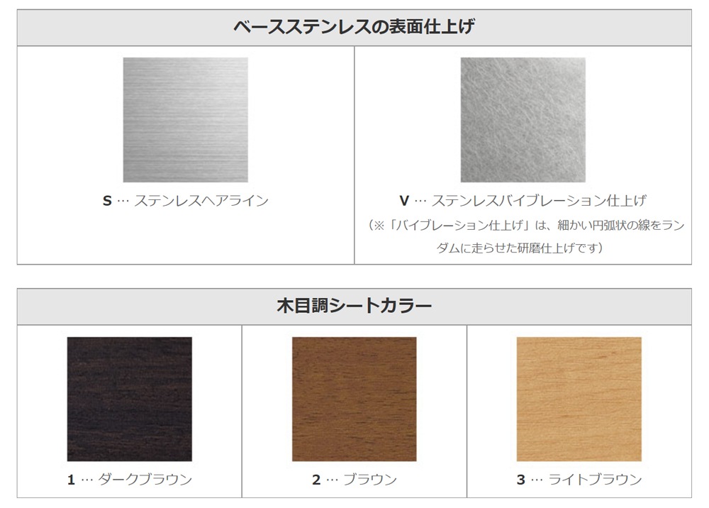 ステンレスヘアライン、木目調シート(カラー:ライトブラウン)