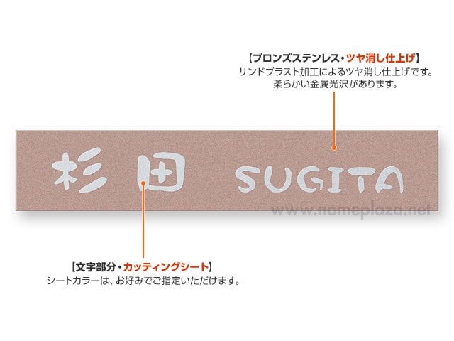 ブロンズステンレス、サンドブラスト仕上げ(全面ツヤ消し)