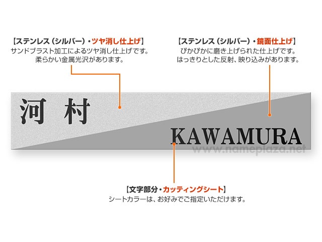 表札の表記内容をご入力下さい。英字のみ漢字のみも可能です。英字は大文字・小文字がそのまま反映されます。