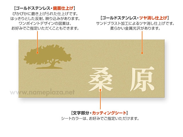 ゴールドステンレス、サンドブラスト仕上げ