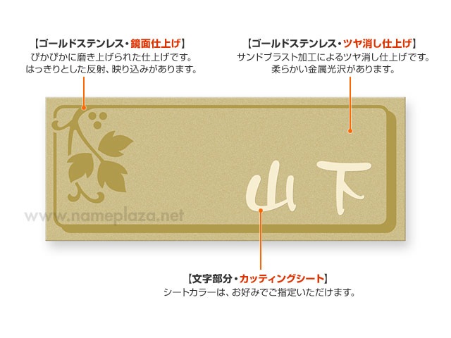 ゴールドステンレス、サンドブラスト仕上げ