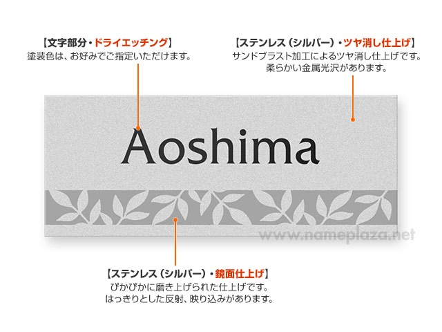 表札 FBDA-S-N4(枝葉のボーダー図案) ファインブラスト W145×H58mm