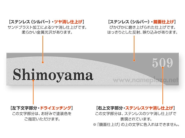 表札の表記内容をご入力下さい。英字のみ漢字のみも可能です。英字は大文字・小文字がそのまま反映されます。