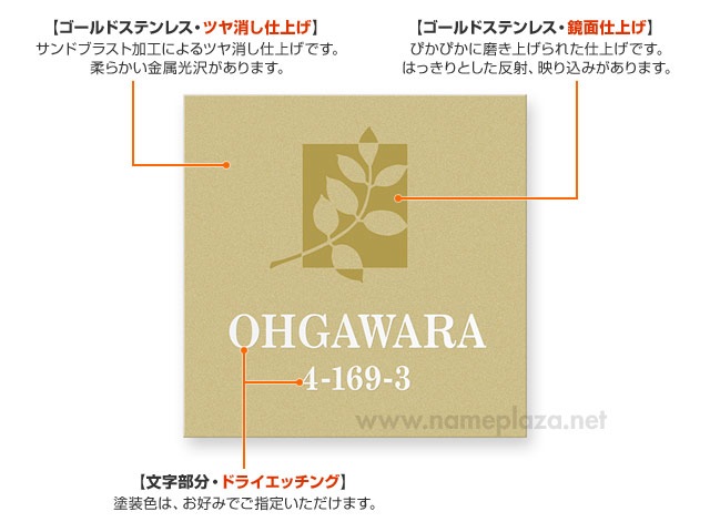 ゴールドステンレス、サンドブラスト仕上げ