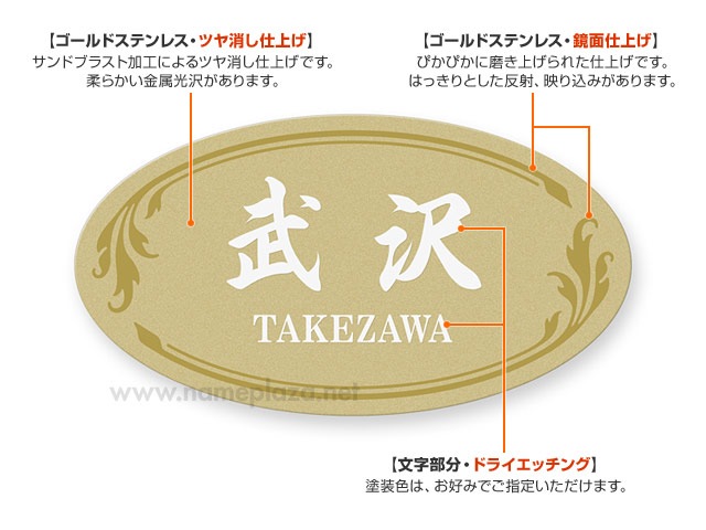 ゴールドステンレス、サンドブラスト仕上げ