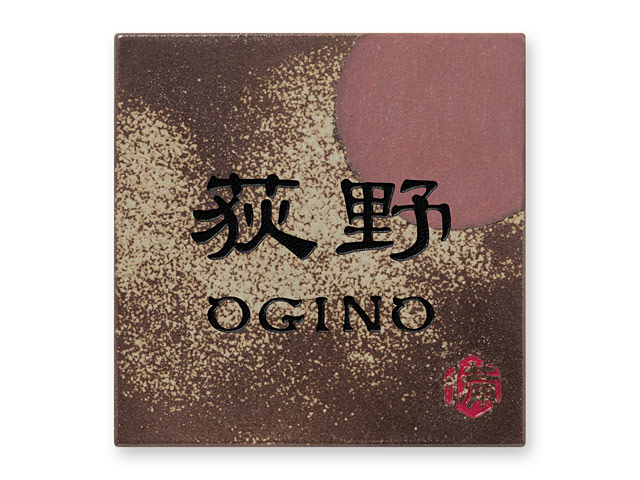 ●備前焼表札シリーズには、備前焼の陶器を使用している証明として備前焼窯元の陶印が彫刻されています。(※備前焼の「陶額・文字彫刻無し」タイプには、陶印はありません。)