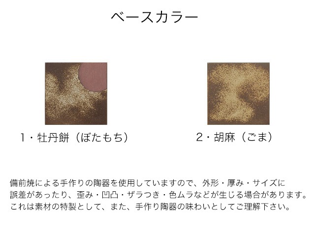 ●備前焼素材の特製として、プレートが若干の「反り」を持つ場合があります。このため、プレート端に最大で2mm程度の浮きが生じる場合があります。あらかじめご了承下さい。