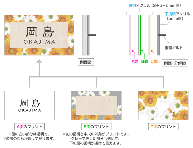 表札 PYSS-13-13(白ベースに花のイラスト)プライ W130×H130mm