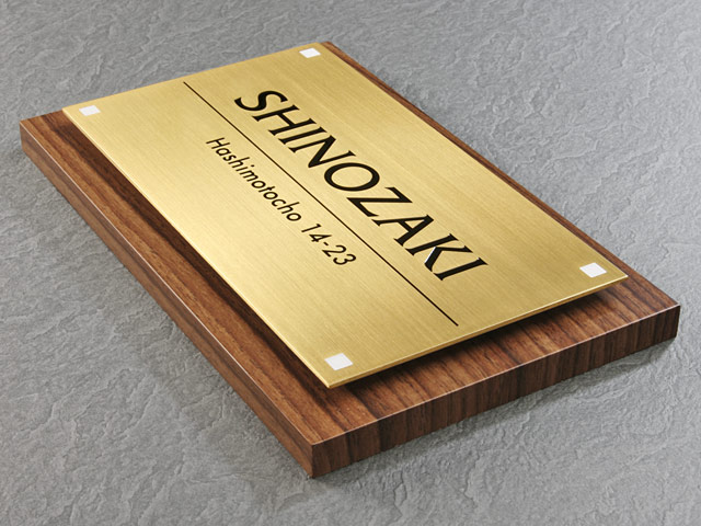 表札 門柱用 MAFF-サインDT17-GF-N3(アーキフレームF対応/木目調ベース+真鍮)W180×H110mm
