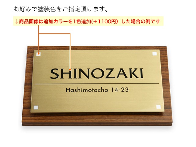 凹部はイブシ調仕上げ(凸部よりも濃い色合い)となり、文字部分カラーや図案部分カラーを指定することはできません。