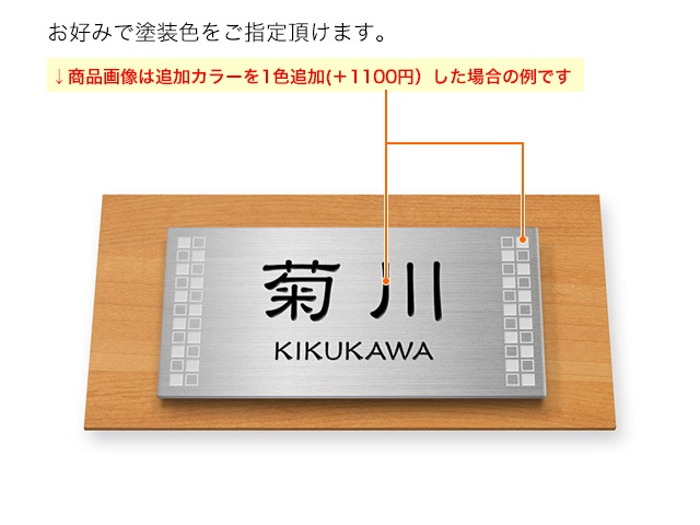 凹部はイブシ調仕上げ(凸部よりも濃い色合い)となり、文字部分カラーや図案部分カラーを指定することはできません。