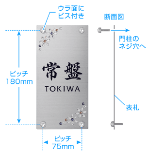 表札 門柱用 SIC-SK-1(クレディ門柱など用/クリスタル装飾)W100×H200mm