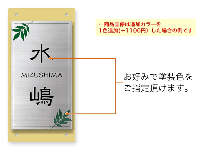 凹部はイブシ調仕上げ(凸部よりも濃い色合い)となり、文字部分カラーや図案部分カラーを指定することはできません。
