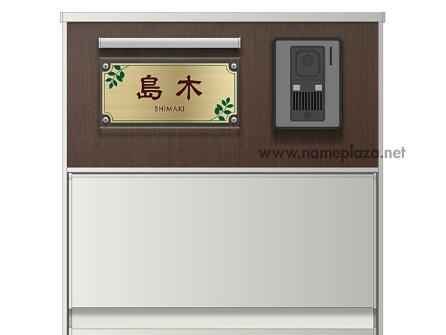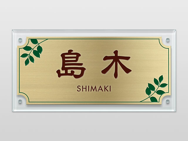 表札 門柱用 SIF-A-GF-N2 (アルディ門柱など用/透明アクリル+真鍮/枝葉の図案) 4穴タイプ W200×H100mm