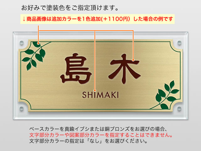 凹部はイブシ調仕上げ(凸部よりも濃い色合い)となり、文字部分カラーや図案部分カラーを指定することはできません。
