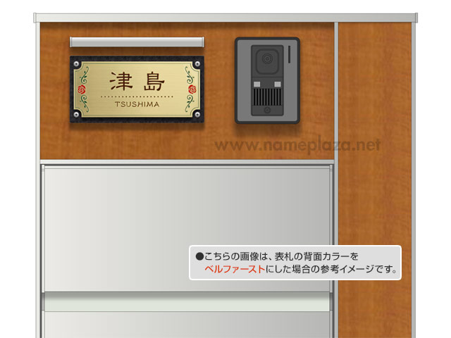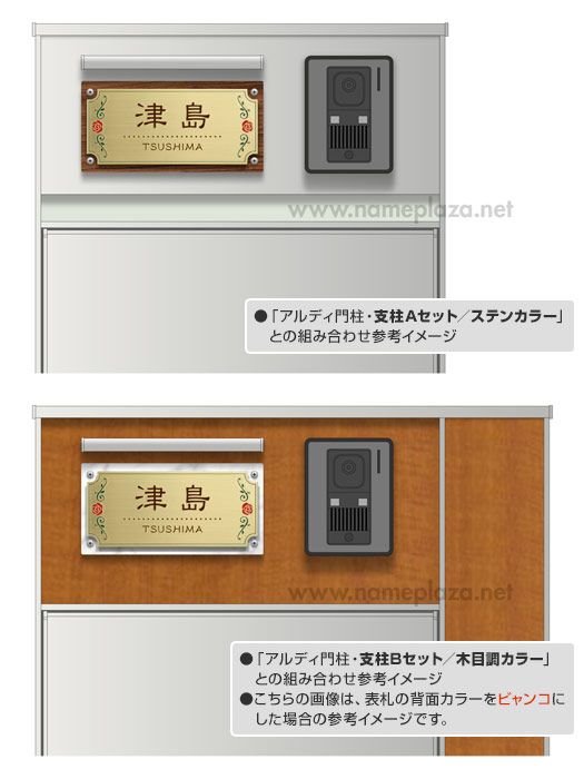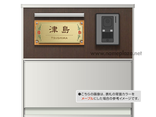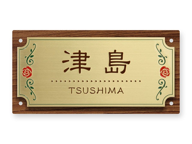 表札 門柱用 SIF-サインD17-GF-N7 (アルディ門柱など用/木目調+真鍮の2層式/バラの図案) 4穴タイプ W200×H100mm