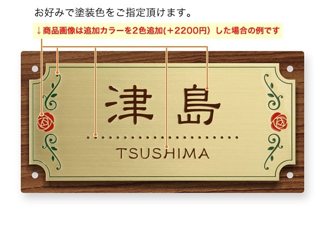 凹部はイブシ調仕上げ(凸部よりも濃い色合い)となり、文字部分カラーや図案部分カラーを指定することはできません。