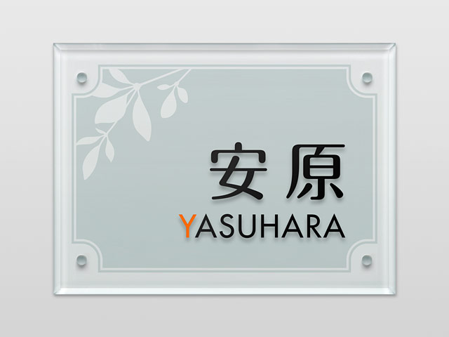 表札 S門柱用 SIHL8-A-N7 (HL8型門柱用/透明アクリル・枝葉の図案) 4穴タイプ W150×H110mm