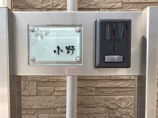 表札と門柱の間にスペーサーを挟むことで、表札が設置面からやや浮き上がり、ほどよい張り出し感のある立体的な見栄えに仕上がります。