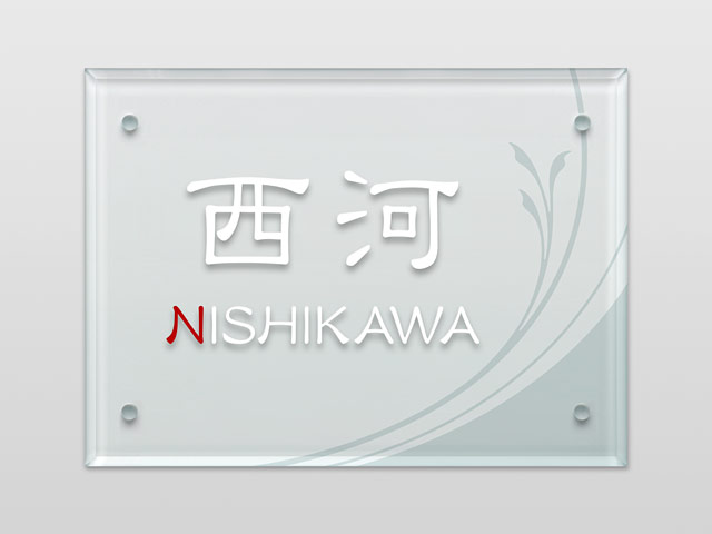 表札 S門柱用 SIHL8-A-N7 (HL8型門柱用/透明アクリル・枝葉の図案) 4穴タイプ W150×H110mm
