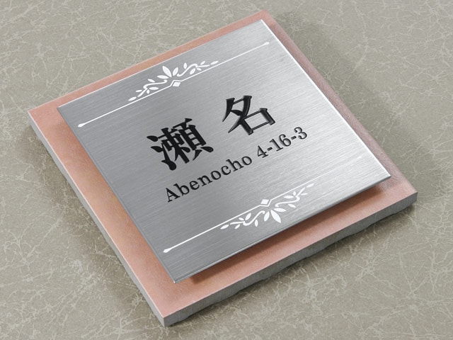 表札 門柱用 SIS-KR3-SF-N10 (105mm角/上下ネジ留めの取付金具付き/タイル+メタルの2層型) W105×H105mm