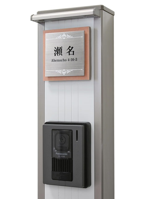【 表札の上下1ヶ所ずつ(計2ヶ所)でビス留め・穴ピッチ85mmの門柱に対応します 】