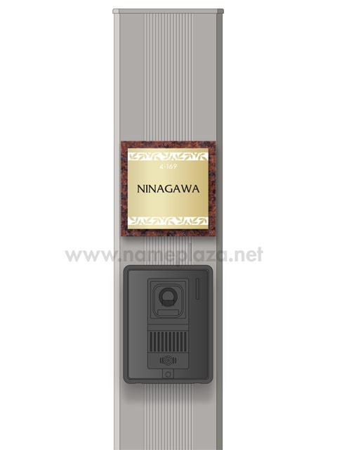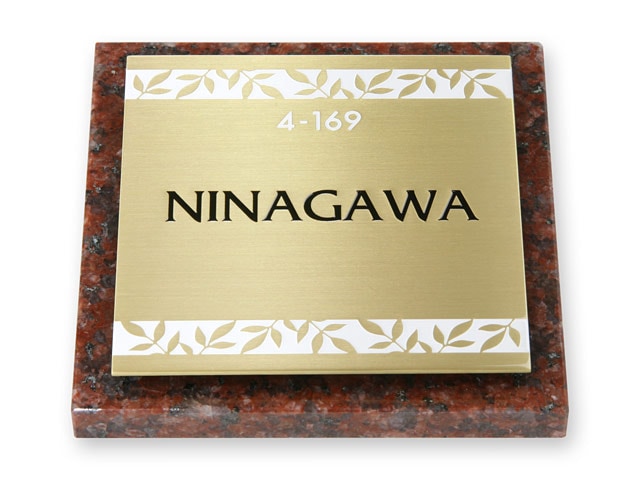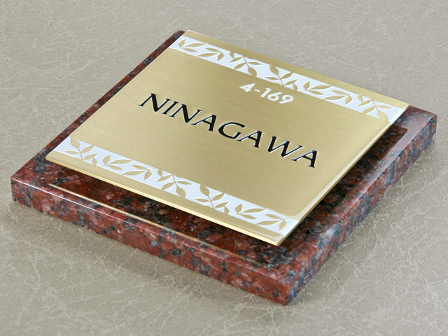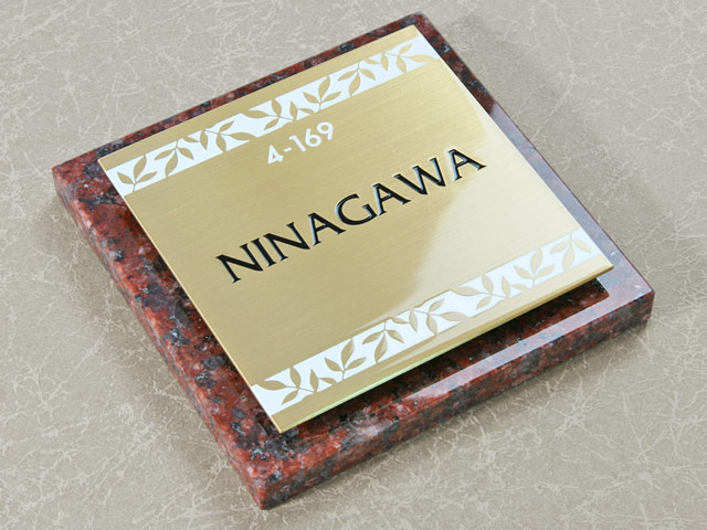 表札 門柱用 SIS-ST7-GF-N8 (105mm角/上下ネジ留めの取付金具付き/赤御影石+メタルの2層型) W105×H105mm
