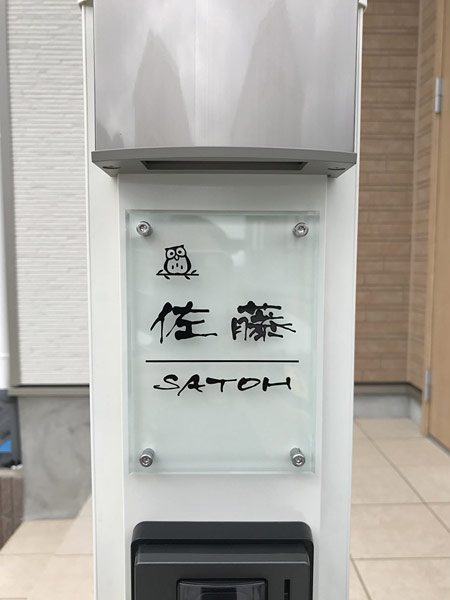 この表札には、写真のようなスペーサー(直径8mm、高さ5.5mmのパイプ状のパーツ)が標準で付属しています。 表札と門柱の間にスペーサーを挟むことで、表札が設置面からやや浮き上がり、ほどよい張り出し感のある立体的な見栄えに仕上がります。
