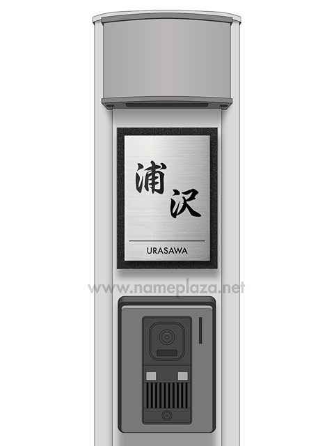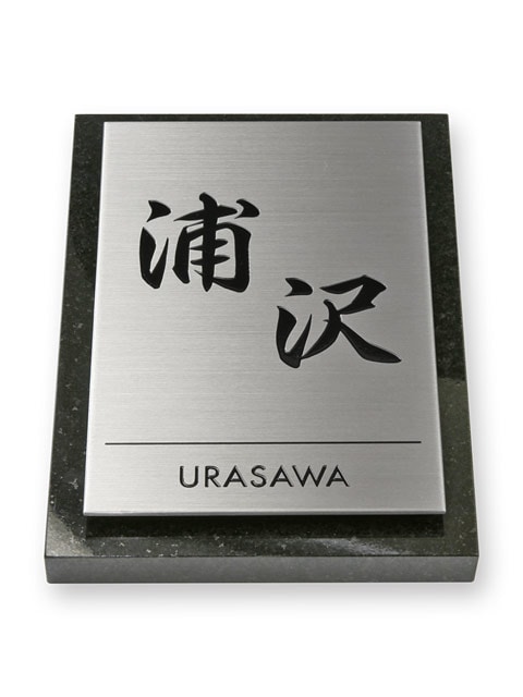 表札 門柱用 SITN-ST8-SF-N1 (取付金具付き、4点 or 2点ネジ留め/黒御影石+ステン) W100×H140mm