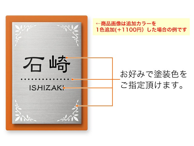 凹部はイブシ調仕上げ(凸部よりも濃い色合い)となり、文字部分カラーや図案部分カラーを指定することはできません。