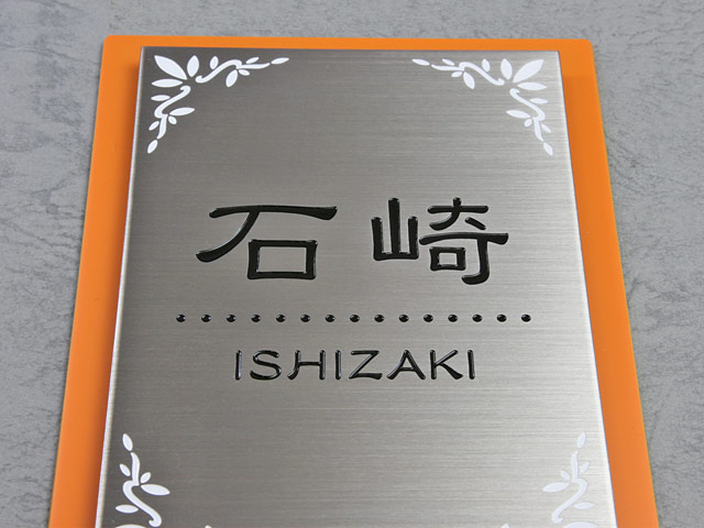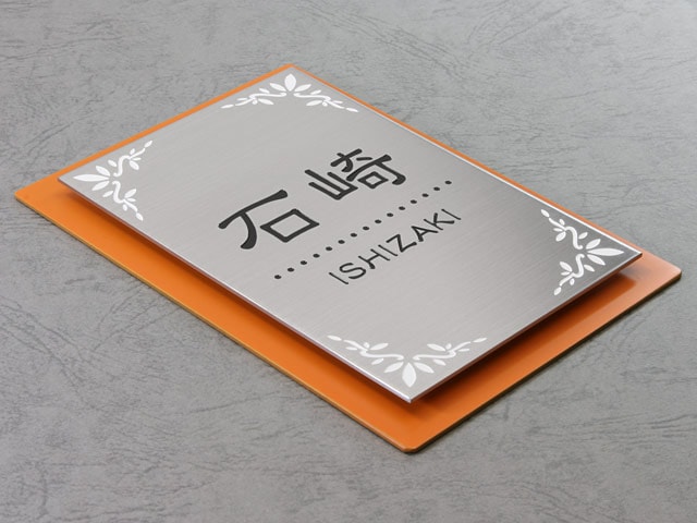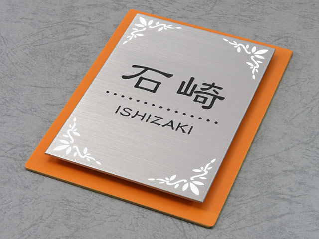 表札 門柱用 SITN-サイン4-SF-N5 (取付金具付き、4点 or 2点ネジ留め/2層メタルプレート表札) W100×H140mm