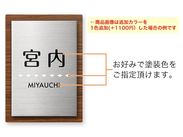凹部はイブシ調仕上げ(凸部よりも濃い色合い)となり、文字部分カラーや図案部分カラーを指定することはできません。