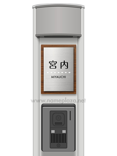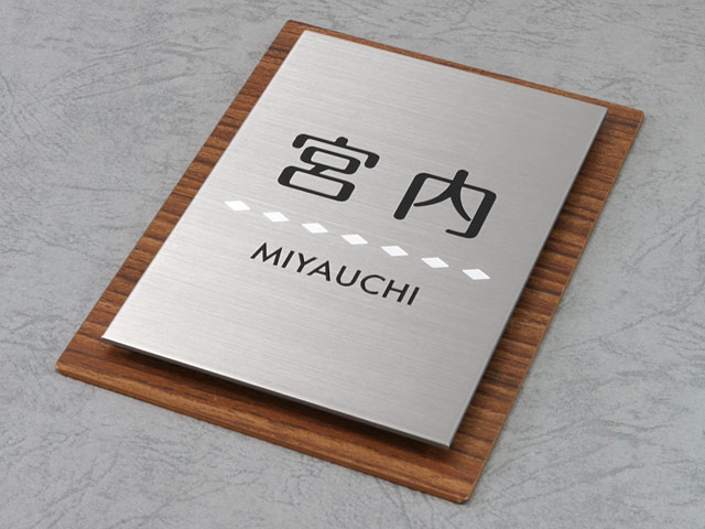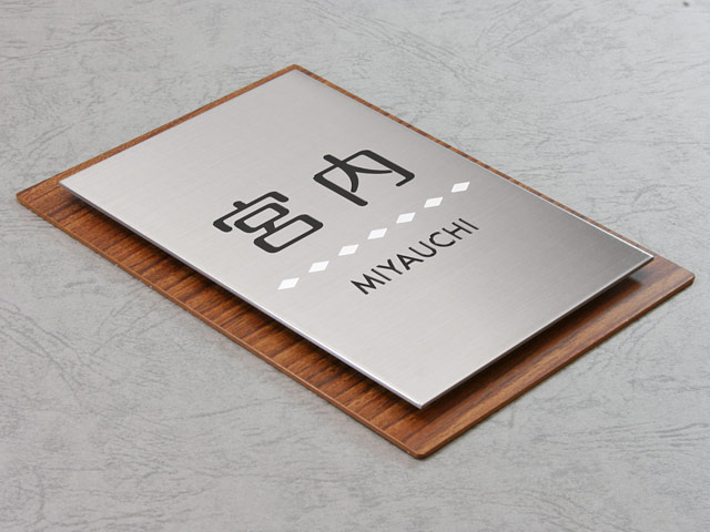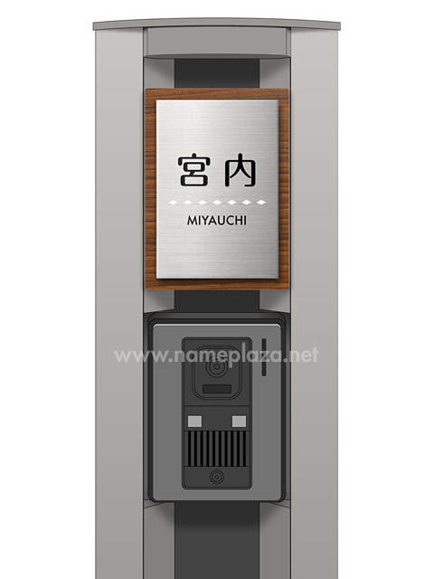 表札 門柱用 SITN-サインD17-SF-N3 (取付金具付き、4点 or 2点ネジ留め/木目調+ステン) W100×H140mm
