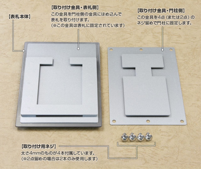 表札用ビス穴が開けられている機能門柱に対応します。