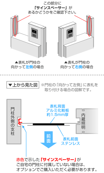 【 ご自宅の門柱の「サインスペーサー」の有無をご確認下さい! 】