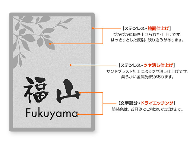 表札 門柱用 SITN-FBDS-N61 (取付金具付き、4点 or 2点ネジ留め/ステンレス) W100×H140mm