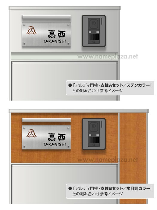 表札 門柱用 SIF-サイン5-SF-N4 (アルディ門柱など用/コゲ茶+ステンの2層式) 4穴タイプ W200×H100mm