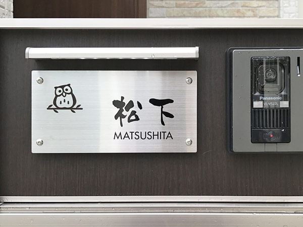 この表札は4ヶ所の穴開けが施されており、ビス留め方式で簡単にお取り付けいただけます。
