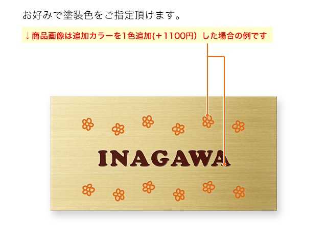 凹部はイブシ調仕上げ(凸部よりも濃い色合い)となり、文字部分カラーや図案部分カラーを指定することはできません。