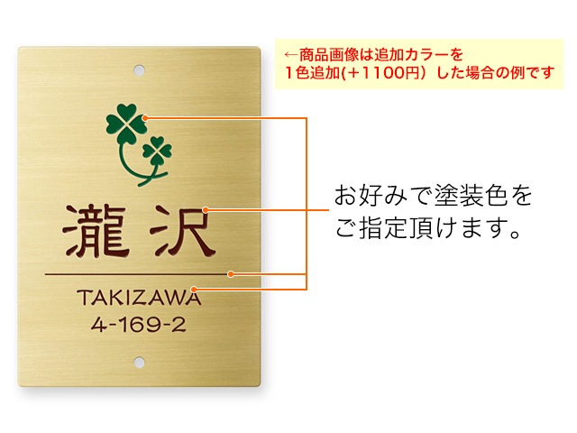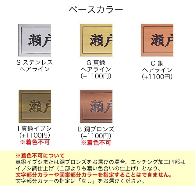 凹部はイブシ調仕上げ(凸部よりも濃い色合い)となり、文字部分カラーや図案部分カラーを指定することはできません。