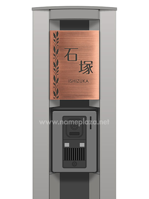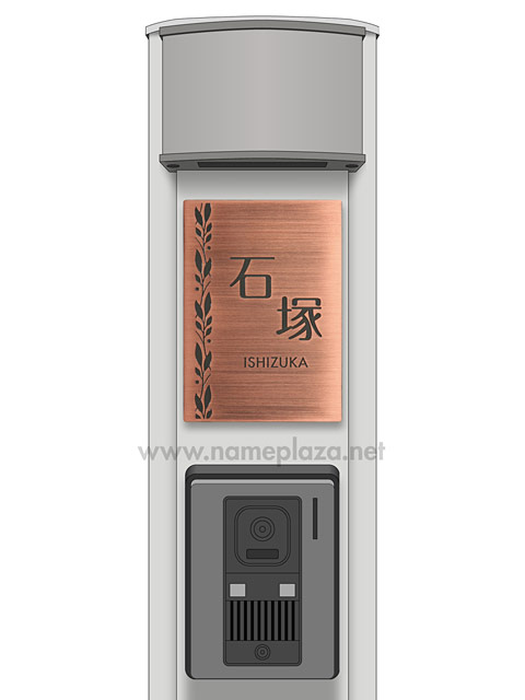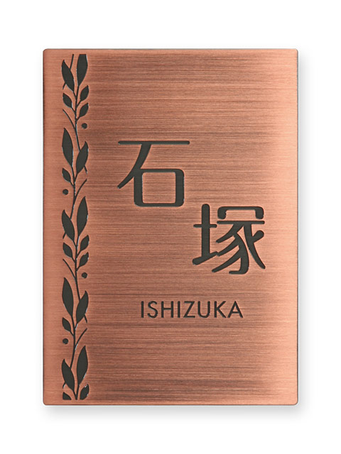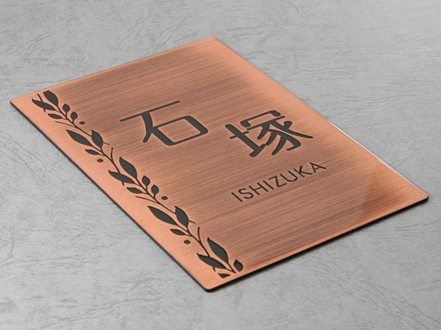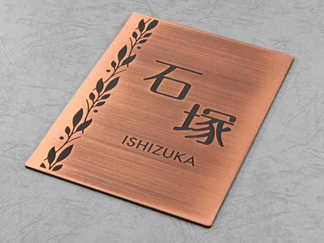 表札 門柱用 SITN-BF-N16 (取付金具付き、4点 or 2点ネジ留め/銅・エッチング) W100×H140mm