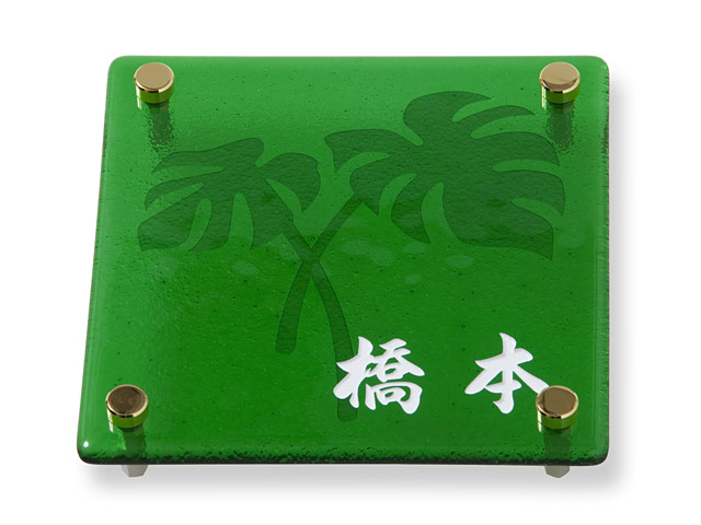 表札 PG-4-8E(モンステラの柄)ピュアガラス W約150×H約150mm